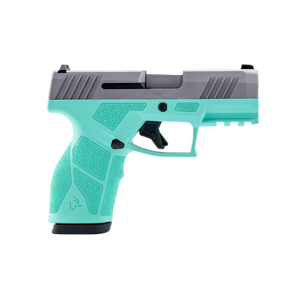 Taurus USA GX2, Semi-automatic, Striker Fired, Compact, 9MM, 3.38" Barrel Length, Matte Finish, Silver and Cyan, Manual Safety, White Dot Front Sight with Drift Adjustable Rear Sight, 10 Rounds, 2 Magazines 1-GX2939C-10