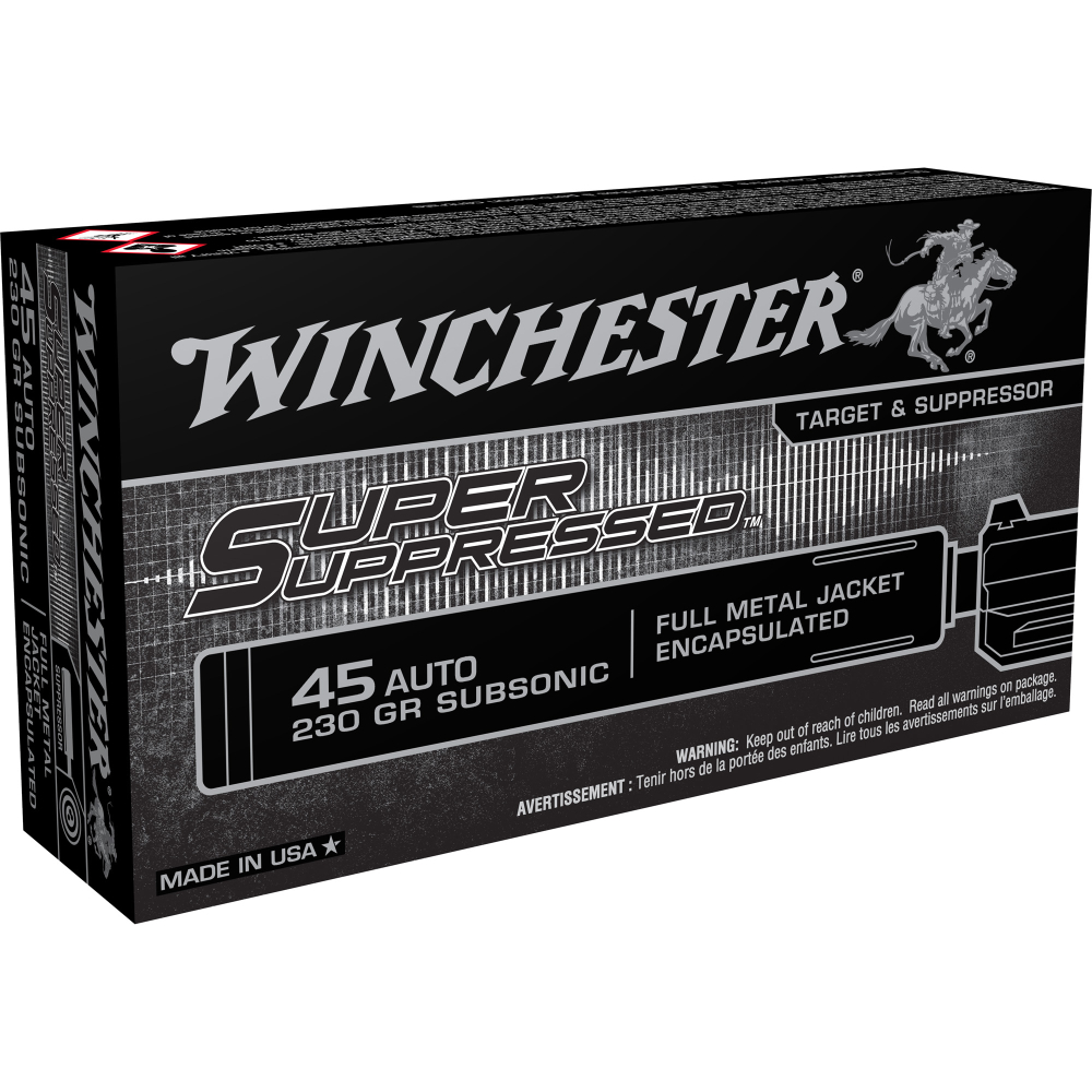 Winchester Ammunition Super Suppressed, 45 ACP, 230 Grain, Subsonic, Full Metal Jacket Encapsulated, 50 Round Box SUP45