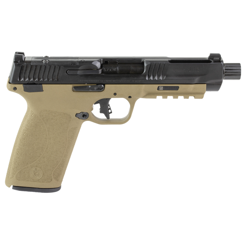 Smith & Wesson M&P 5.7, Semi-automatic, Single Action Only Internal Hammer Fired, Full Size, 5.7X28MM, 5" Threaded Barrel, Optics Ready, 3 Dot Sights, Flat Dark Earth Frame, Black Slide, 22 Rounds, 6 Magazines, Includes Savior Specialist Bag 14751