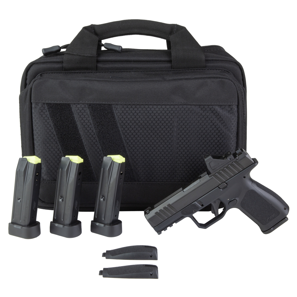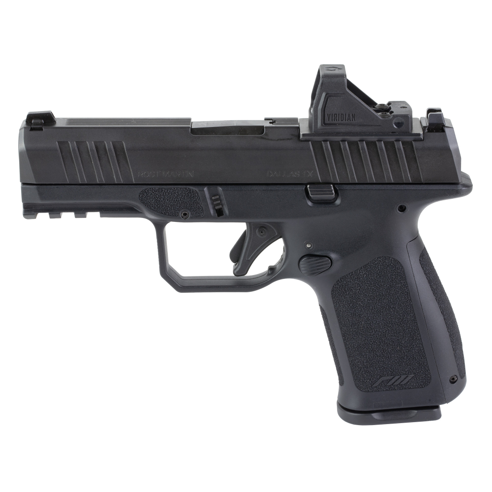 Rost Martin RM1C, Range Ready Package, Semi-automatic, Striker Fired, Polymer Frame Pistol, Compact, 9MM, 4" Barrel, Nitrocarburized Finish, Black, Iron Sights, Viridian Green Dot Sight, 10 Rounds, 4 Magazines, Includes Black Savior Specialist Pistol Bag RM1CBLKOSP10SPL