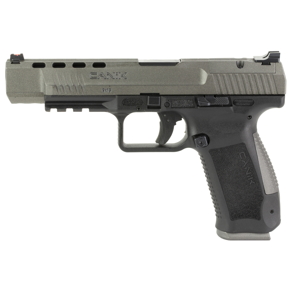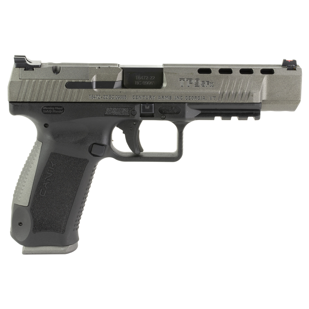 CANIK TP9SFx, Striker Fired, Semi-automatic, Polymer Frame Pistol, 9MM, 5.2" Match Grade Barrel, Tungsten Slide, Black Frame, Warren Tactical Sights, 10 Rounds, 2 Magazines, Includes Holster, Interchangeable Backstraps and Four Red Dot Interface Plates HG4192G-N