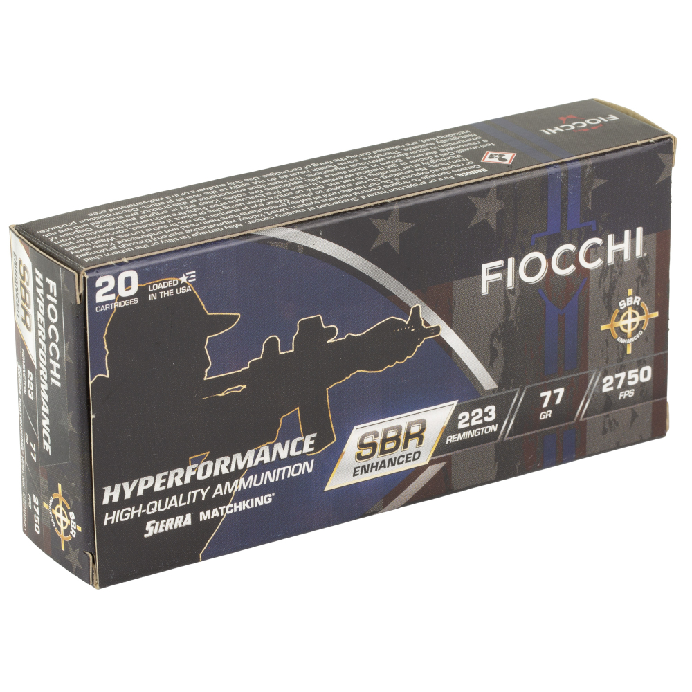 Fiocchi Ammunition Hyperformance SBR, Enhanced, 223 Remington, 77 Grain, Boat Tail Hollow Point, 20 Round Box 223SBRD