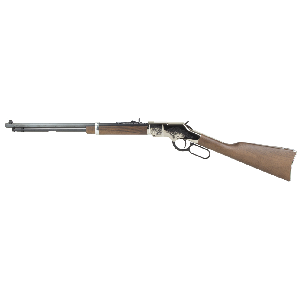 Henry Repeating Arms Silver Boy Father's Day, Lever Action Rifle, 22 LR/22 Short, 20" Octagon Barrel, Nickel Finish, Silver, Engraved Receiver, Adjustable Buckhorn Rear Sight/Bead Front Sight, Walnut Stock, 16 Round and 21 Round H004SFD