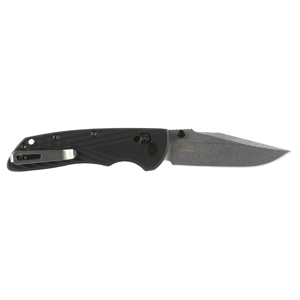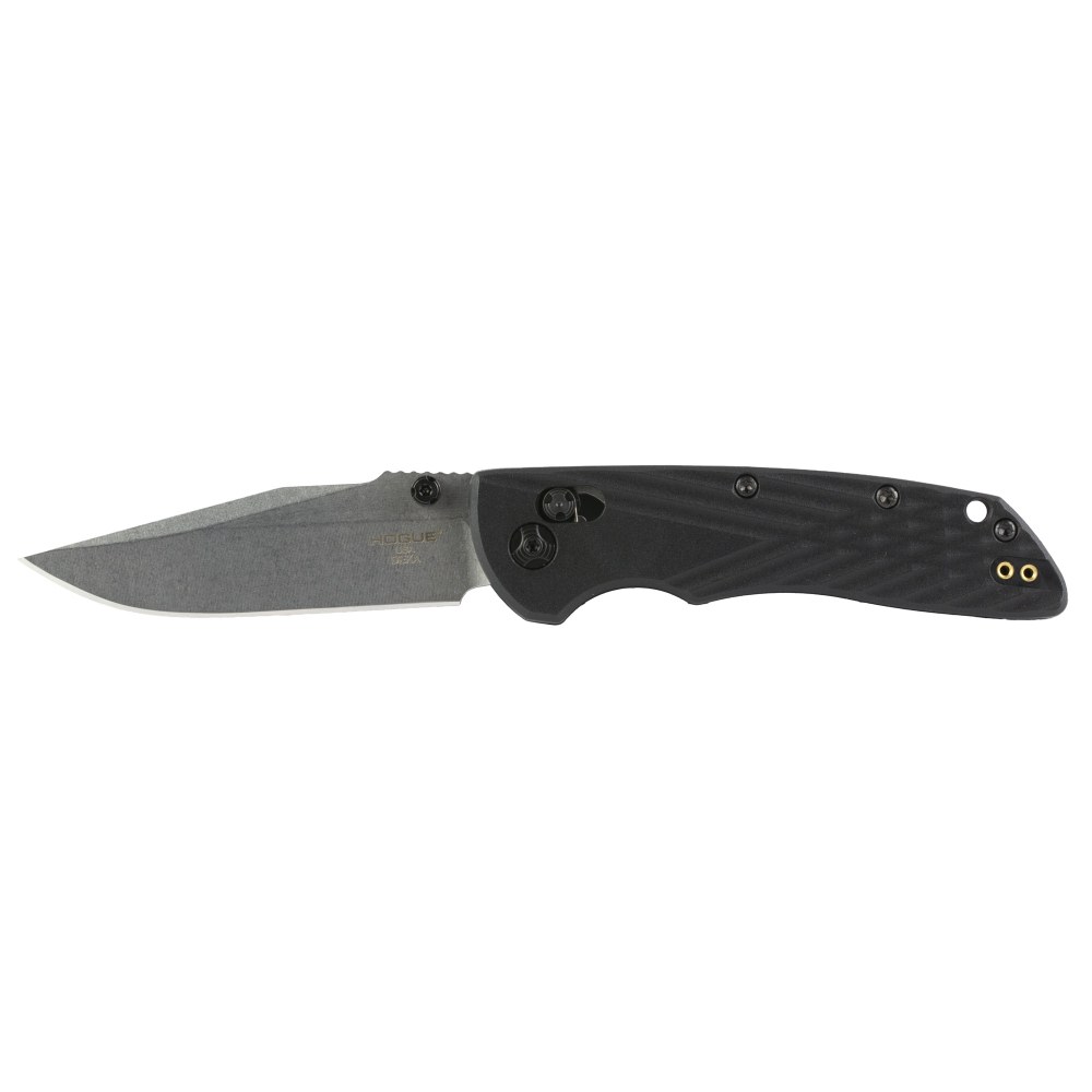 Hogue Deka, Folding Knife, CPM MagnaCut, Stone Tumbled Finish, Silver, Plain Clip Point Edge, 3.25" Blade, Black Polyamide Nylon 12 Grips 24379