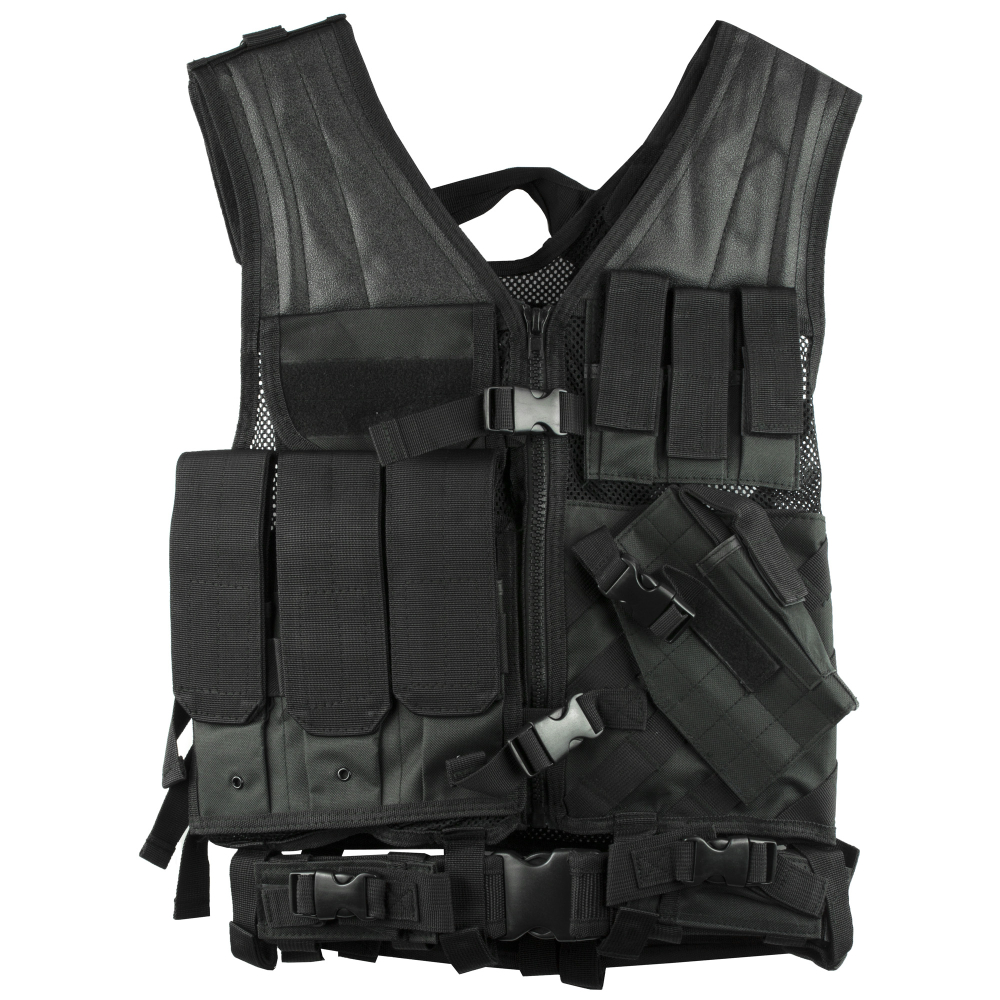 NcSTAR Tactical Vest, Nylon, Black, Size Medium- 2XL, Fully Adjustable, PALS Webbing, Pistol Mag Pouches, Rifle Mag Pouches, Includes Pistol Belt with Additional Accessory Pouches CTV2916B