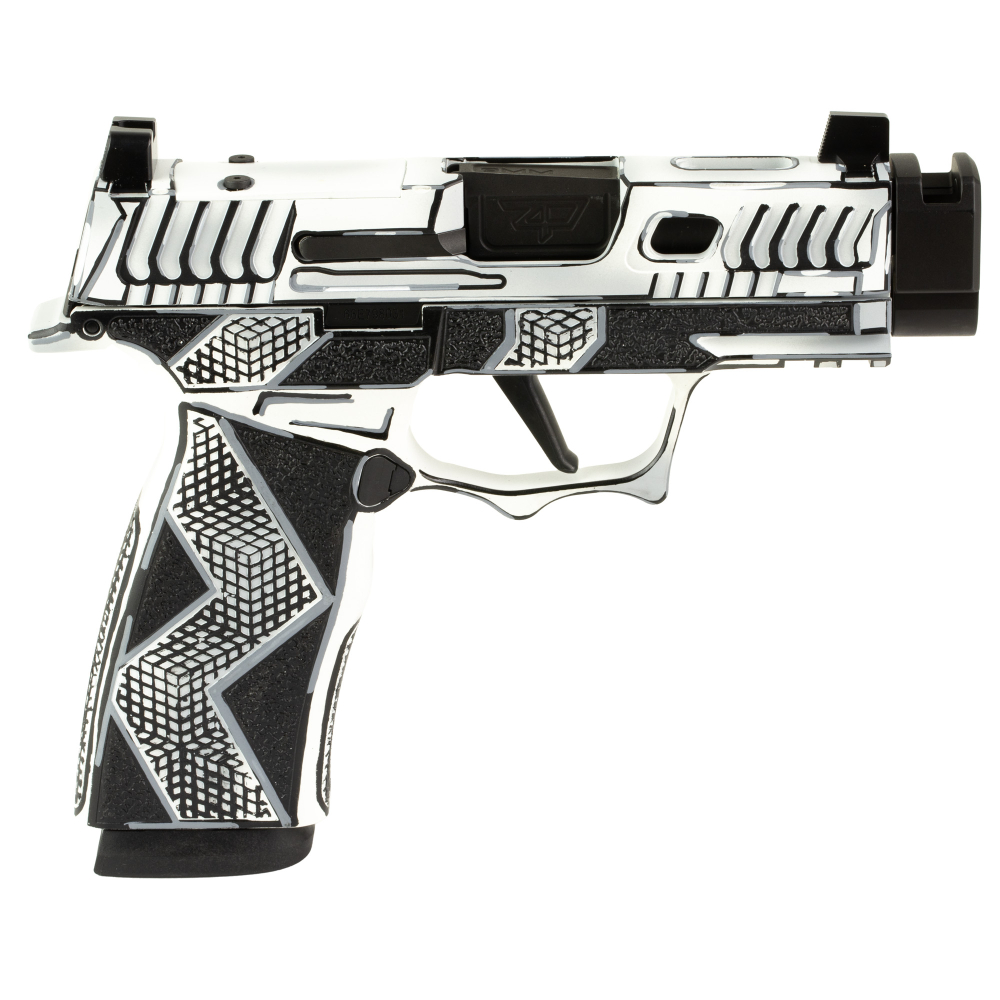 Sig Sauer P365X Komodo Anime, Striker Fired, Semi-automatic, 9MM, 3.1" Zaffiri Threadless Compensated Barrel, Komodo Aluminum Grip Module, Custom White Cerakote Finish by Shark Coast Tactical, Fixed Sights, Optic Ready, 17 Rounds, 2 Magazines 300-252-0408-11