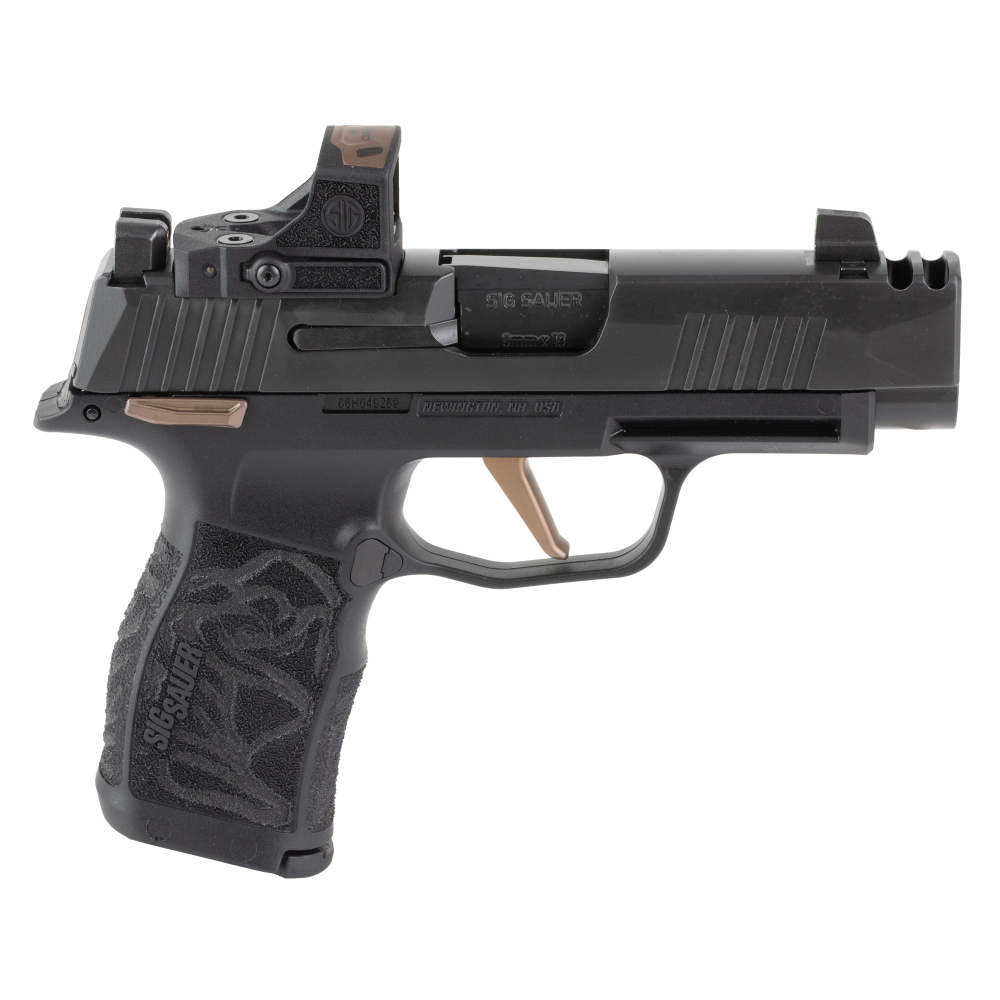 Sig Sauer P365XL ROSE, Semi-automatic, Striker Fired, Polymer Frame Pistol, Sub-compact, 9MM, 3.1" Barrel, Nitron Finish, Black, Rose Gold Accents, ROMEO-RS Sight, X-RAY3 Day/Night Sights, Polymer Grips, Manual Safety, 12 Rounds, 2 Magazines 365XL-9-ROSE-MS-RS