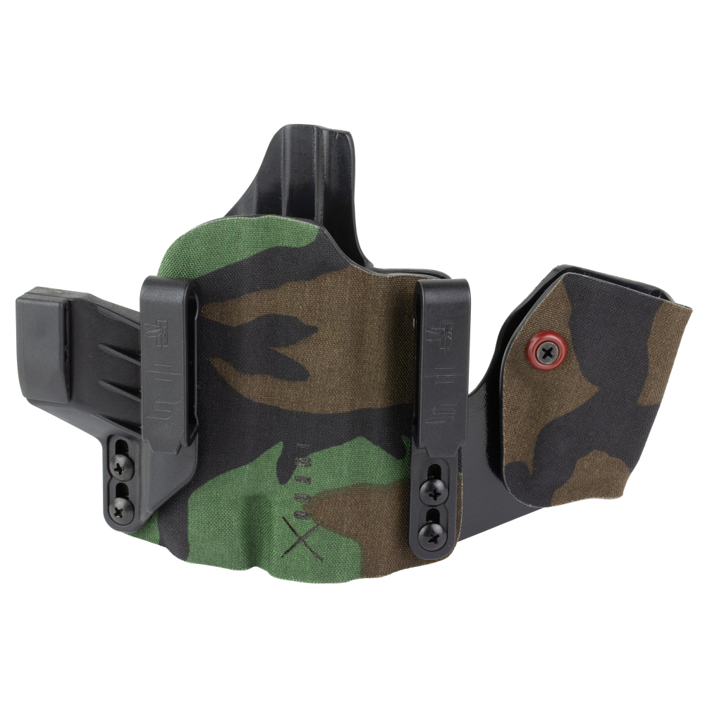 Safariland INCOG-X, Joint Collaboration with Haley Strategic, Inside the Waistband Holster, Fits SIG P365/X/XL with Light, Integrated Magazine Caddy, Microfiber Suede Wrapped Boltaron Construction, Woodland Camo, Right Hand 1341419