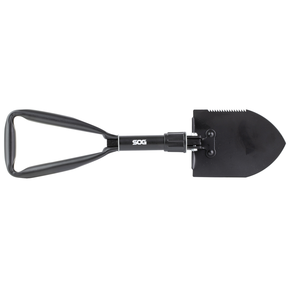 SOG Knives & Tools Entrenching Tool, Multi-Tool, Serrated Edge, High Carbon Steel, Black Powder Coat, Black Handle, Includes Nylon Sheath SOG-F08-N