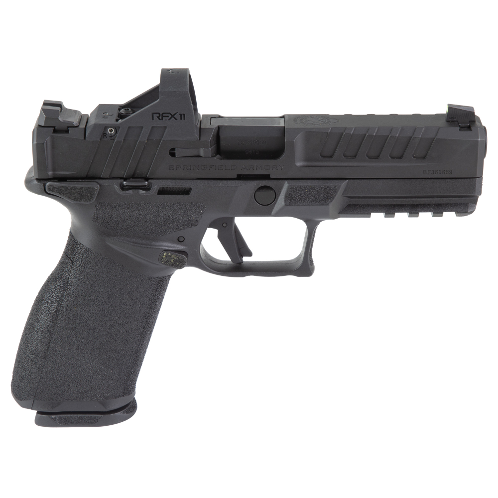 Springfield Echelon Gear Up, Striker Fired, Semi-automatic, Polymer Frame Pistol, Full Size, 9MM, 4.5" Barrel, Melonite Finish, Black, Optics Ready Slide, Front Tritium Night Sight, Tactical Rack U-Dot Rear, Manual Safety, 10 Rounds, 5 Magazines, Includes Viridian RFX11 Green Dot Sight and Range Bag EC9459BMSLC-U-GU25