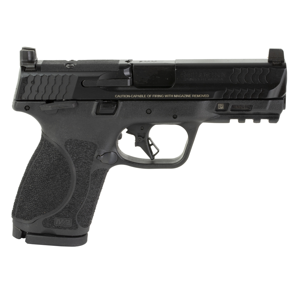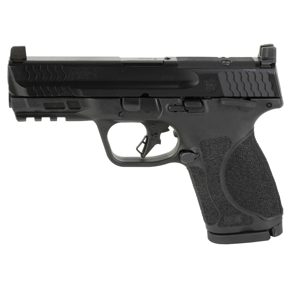 Smith & Wesson M&P M2.0, Striker Fired, Semi-automatic, Polymer Frame Pistol, Compact, 9MM, 4" Barrel, Armornite Finish, Black, Optic Height Sights, Optics Ready, Thumb Safety, Flat Face Trigger with Integrated Trigger Safety, 15 Rounds, 2 Magazines 13568