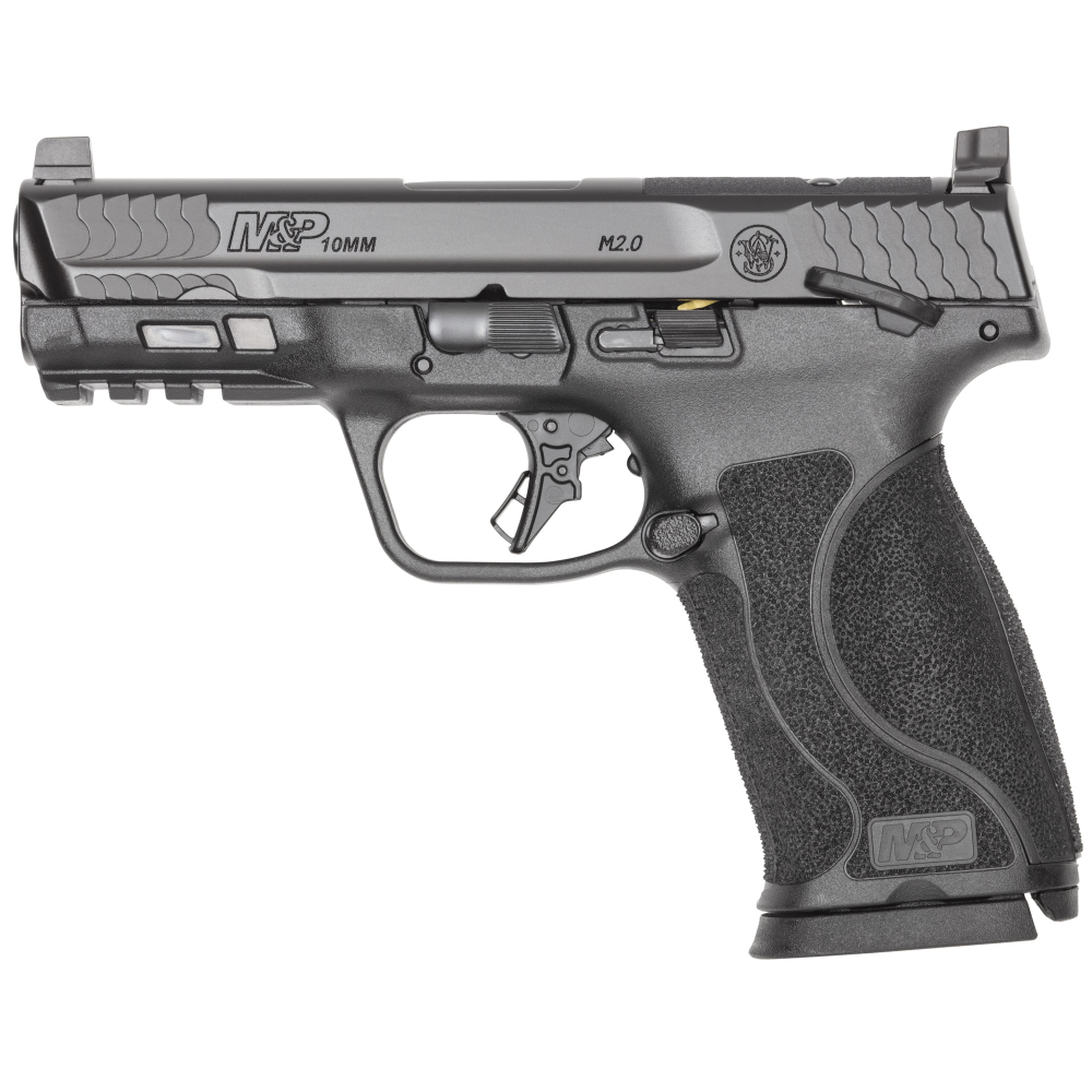 Smith & Wesson M&P M2.0, Striker Fired, Semi-automatic, Polymer Frame Pistol, Full Size, 10MM, 4" Barrel, Armornite Finish, Black, Optic Height White 3 Dot Sights, Thumb Safety, 10 Rounds, Optics Ready Slide, 2 Magazines 14092