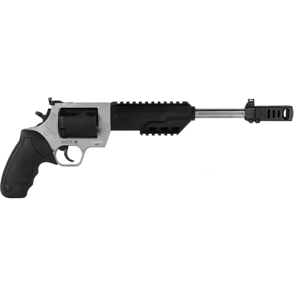 Taurus USA Raging Hunter, Double/Single Action, Metal Frame Revolver, Large Frame, 460 S&W, 10" Barrel, Stainless Steel, Matte Finish, Black Barrel/Cylinder, Silver Frame, Rubber Grips, Adjustable Rear Sight, 5 Rounds 2-460105RH