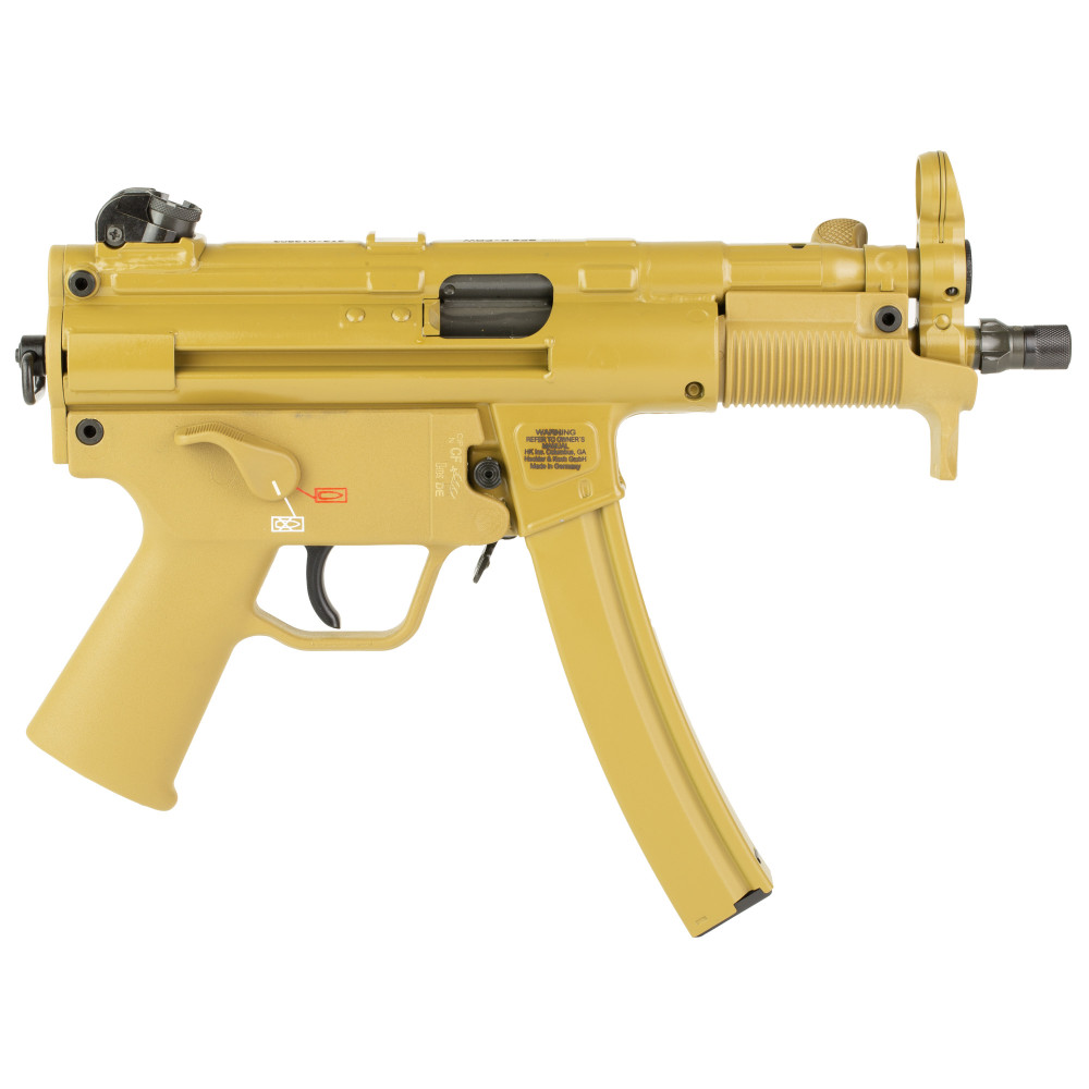 Heckler & Koch SP5K-PDW, Pistol, Semi-automatic, 9MM, 5.83" Barrel, Threaded with Tri-Lug Adaptor, Steel, Cerakote Finish, Flat Dark Earth, Polymer Pistol Grip, Iron Sights, Ambidextrous Safety, 30 Rounds, 2 Magazines 81001076