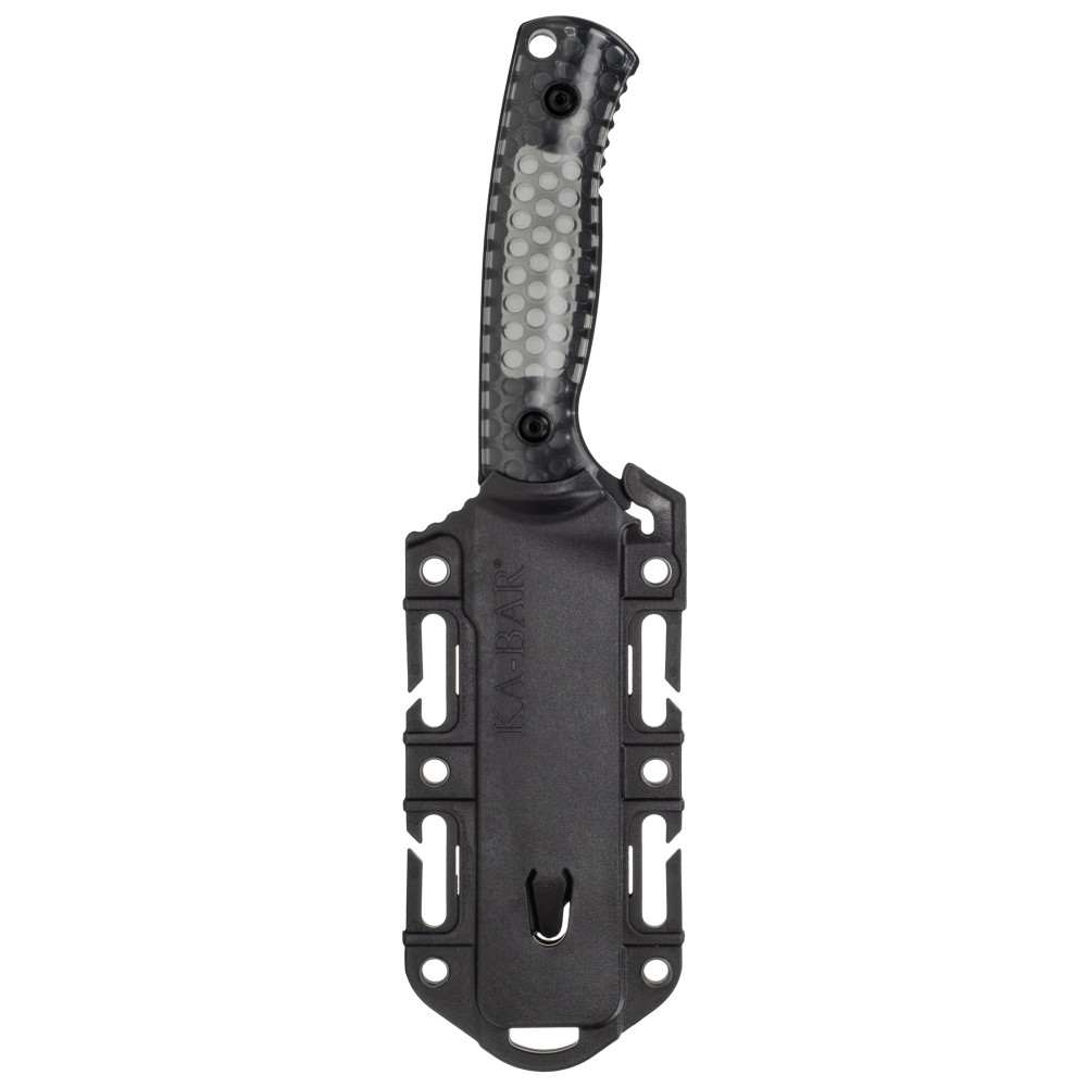 KA-BAR Knives Cool Name, Fixed Blade Knife, 1095 Cro-Van, 4.625" Blade Length, 9.375" Overall Length, Plain Edge, Sheepsfoot, Black Blade, Smoke Polycarbonate Handle, Includes Sheath 7701