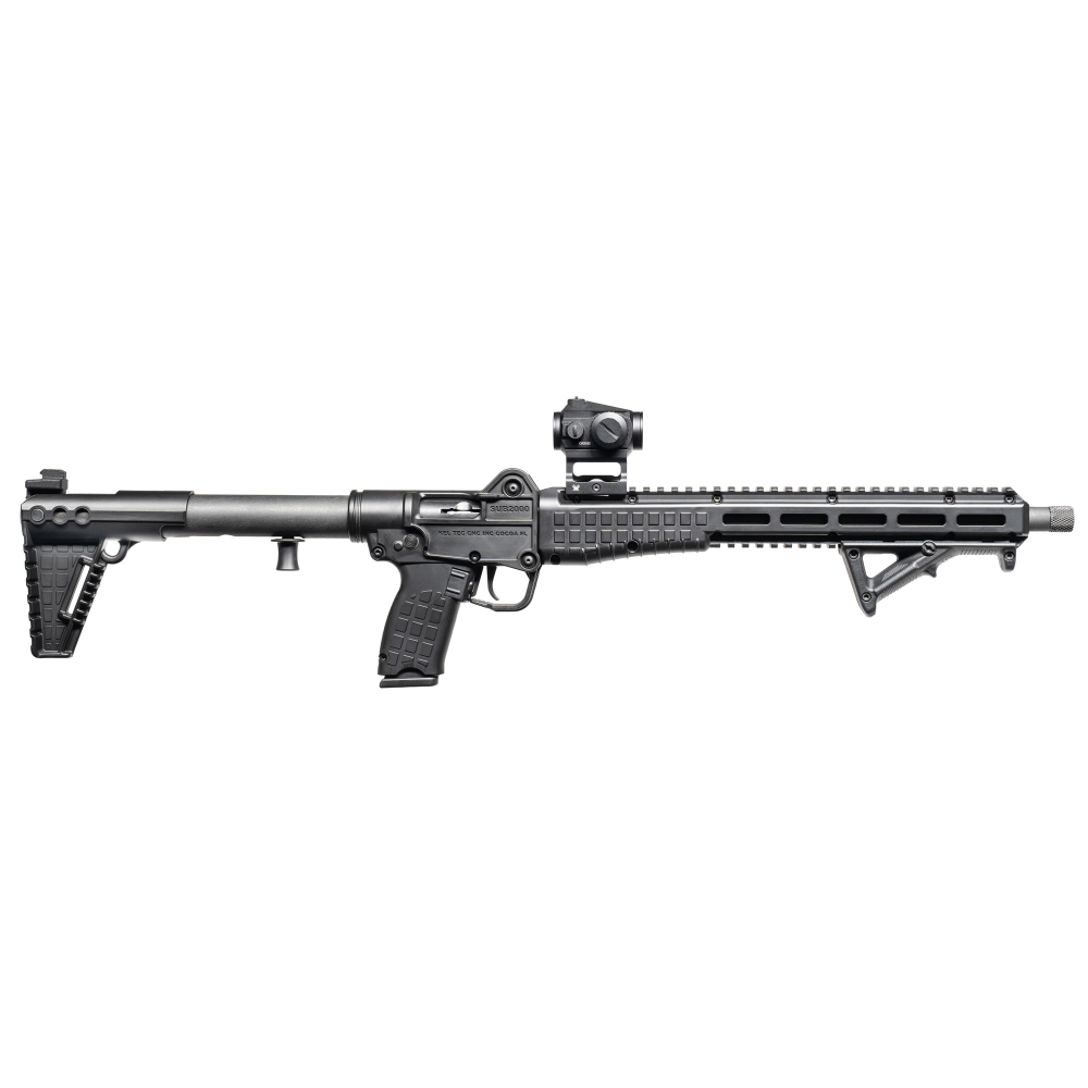 Kel-Tec Sub 2000 Defender, Gen 3, Semi-automatic Rifle, 10MM, 16.1\" Threaded Barrel, 5/8X24 Thread Pitch, Matte Finish, Black Furniture, Vortex Crossfire Red Dot, Magpul Angled Grip, 2 Magazine, 15 Rounds, For Glock 20 Magazines SUB2K10GLKBLKD