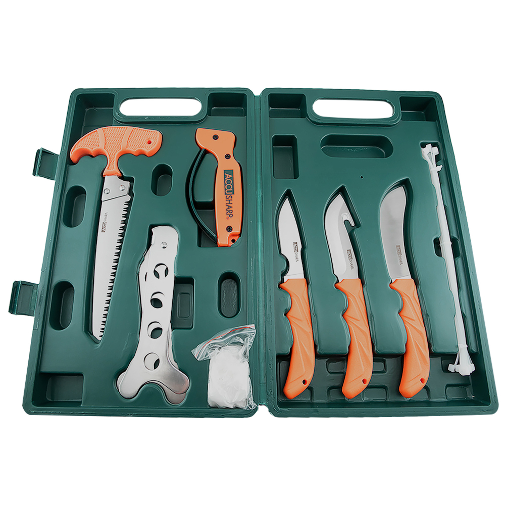 AccuSharp Game Processing Kit, Fixed Blade Kit, Orange Handles, Steel Blades, 9-Piece Kit 728C