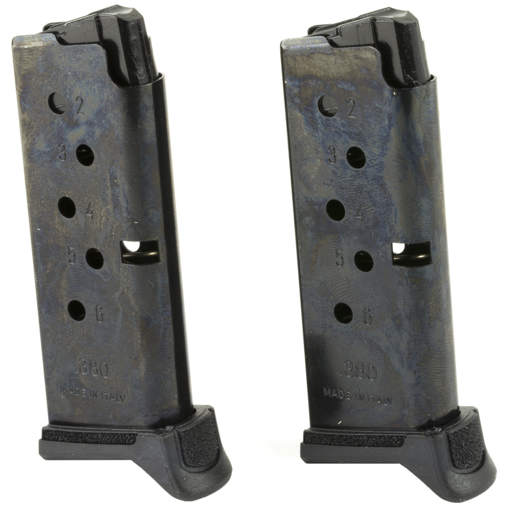Ruger Magazine, 380ACP, 6 Rounds, Fits Ruger LCP II, 2 Pack, Steel, Black 90644