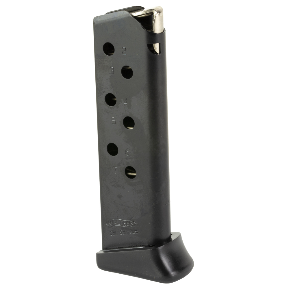 Walther Magazine, 380 ACP, 7 Rounds, Fits Walther PPK/S, Anti-Friction Coating, Black 2246030