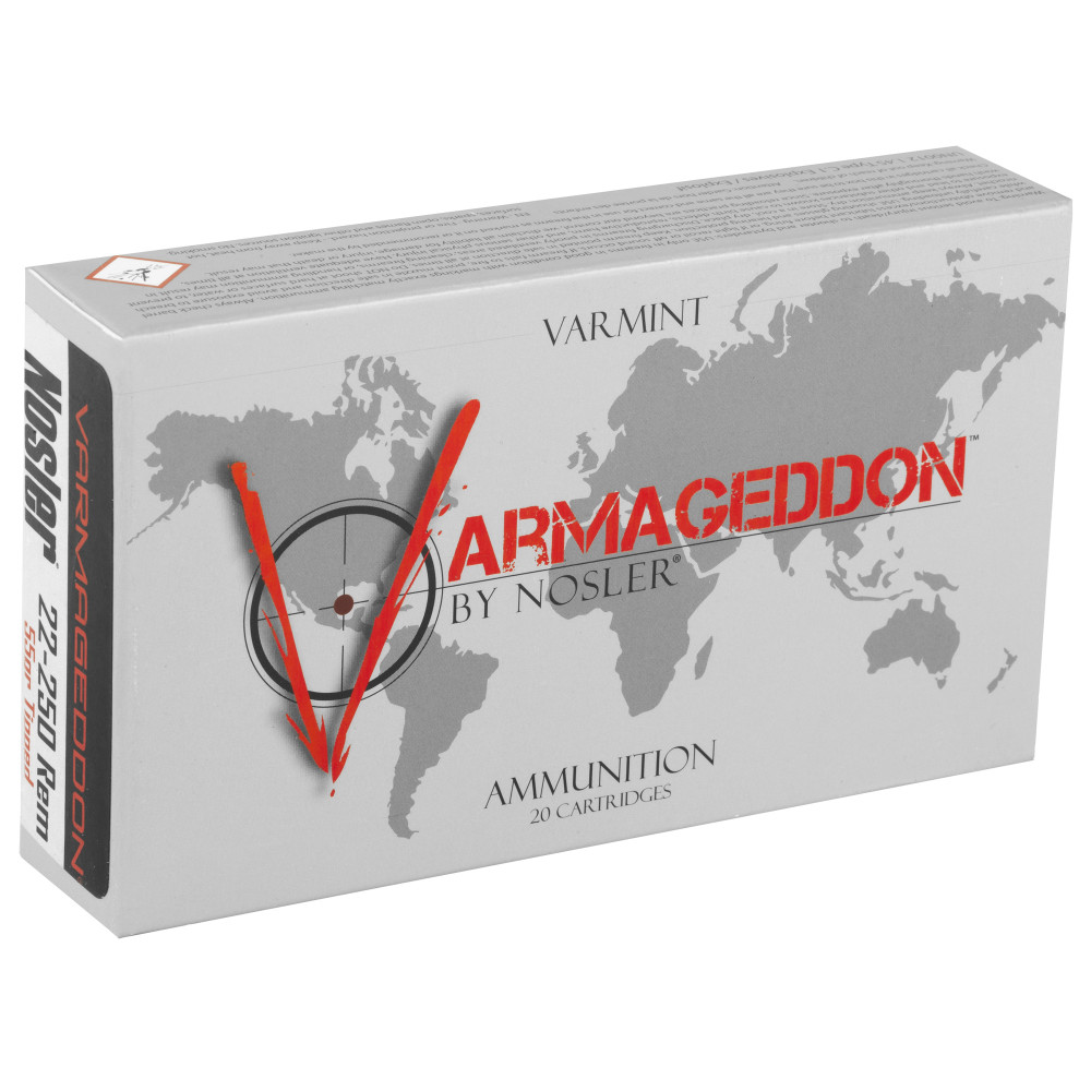Nosler Varmageddon, 22-250 Remington, 55 Grain, Flat Base Tipped, 20 Round Box 65155