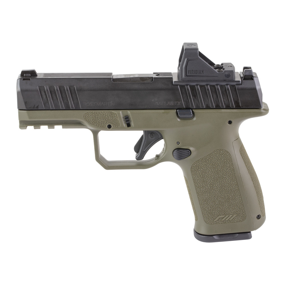 Rost Martin RM1C, Range Ready Package, Semi-automatic, Striker Fired, Polymer Frame Pistol, Compact, 9MM, 4" Barrel, Nitrocarburized Finish, Olive Drab Green Frame, Iron Sights, Viridian Green Dot Sight, 4 Magazines, (3)-17 Round & (1)-15 Round, Includes RMR Mounting Plate & Savior Specialist Pistol Bag RM1CODGOSPSPL