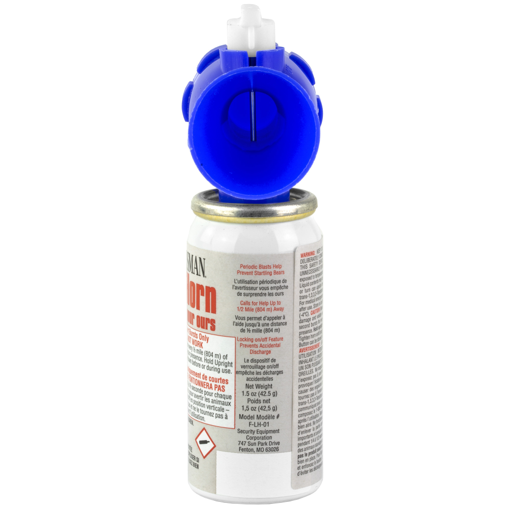 Sabre Alarm, Frontiersman Bear Horn w/ On/Off Locking Top to Prevent Accidental Deployment, Blue F-LH-01