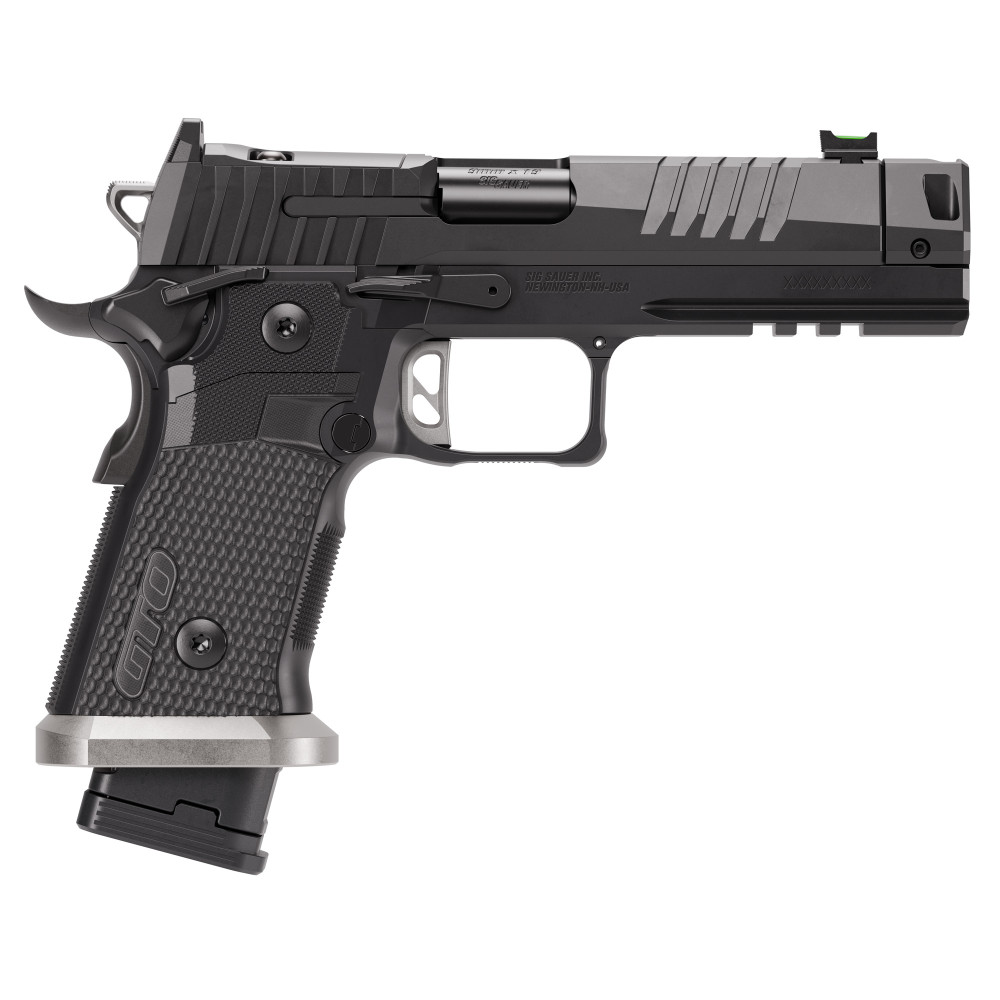 Sig Sauer P211, Semi-automatic, Single Action Only, Metal Frame Pistol, Full Size, 9MM, 4.4" Barrel, MACH3D Compensator, Nitron Finish, Black, Sig-Loc Pro Footprint Optics Ready Slide, Fiber Optic Sights, Flared Magwell, 3 Magazines, (2)-21 Round & (1)-23 Round 211F-9-GTO