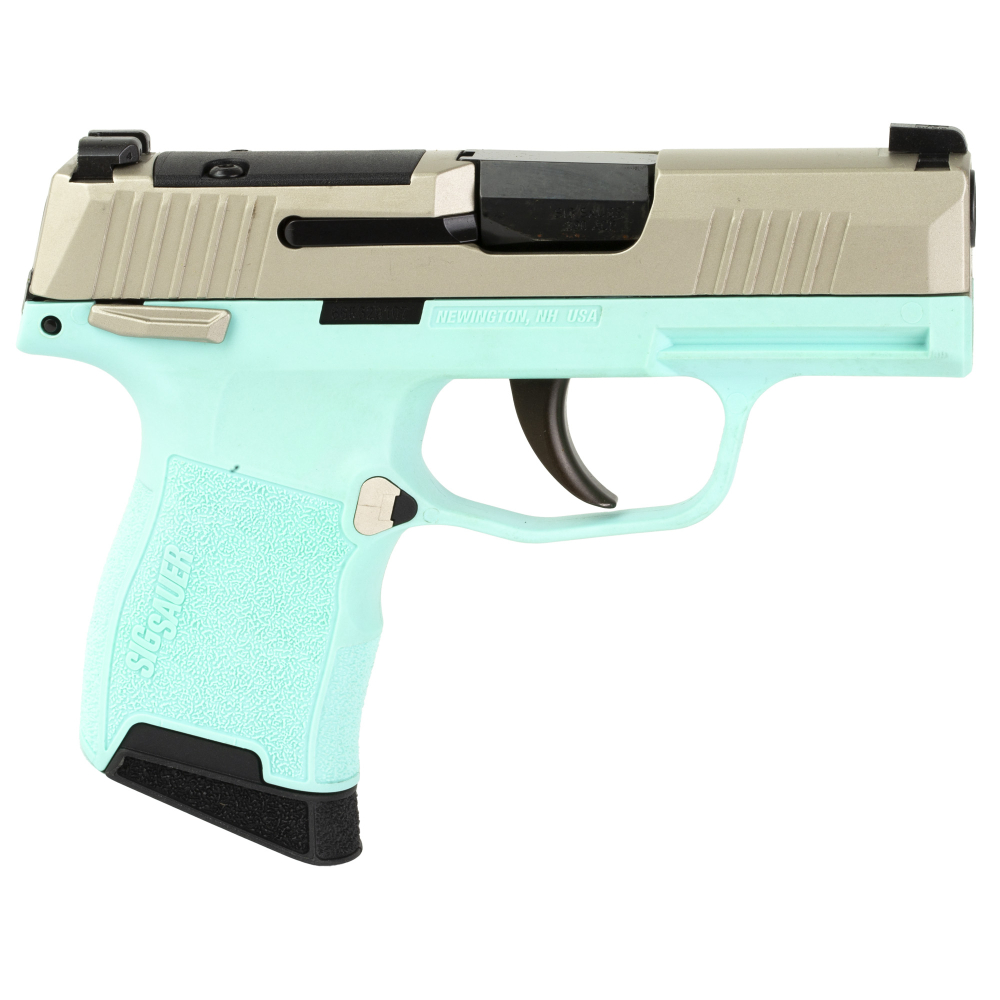 Sig Sauer P365, Striker Fired, Semi-automatic, Polymer Frame Pistol, Sub-Compact, 380 ACP, 3.1\" Barrel, Robins Egg Blue Frame, Nickel Optics Ready Slide, SIGLITE Day/Night Sights, 10 Rounds, 2 Magazines 365-380-REB-MS