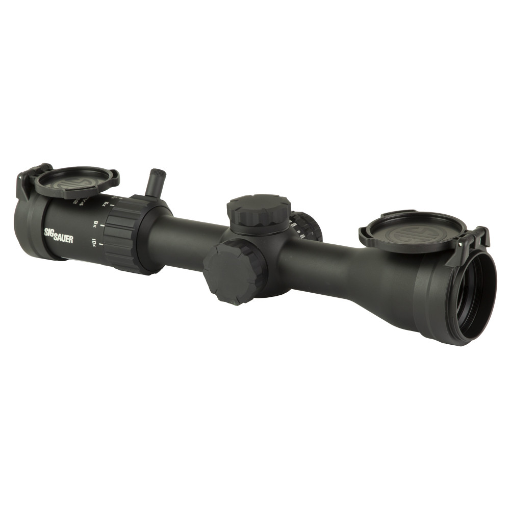 Sig Sauer Whiskey 4, Rifle Scope, 2.5-10X42mm, Second Focal Plane, Hellfire Illuminated Quadplex Reticle, 42mm Objective, 30mm Main Tube, Matte Finish, Black, 0.25 MOA Adjustment, Included Flip Back Lens Cover SOW42004