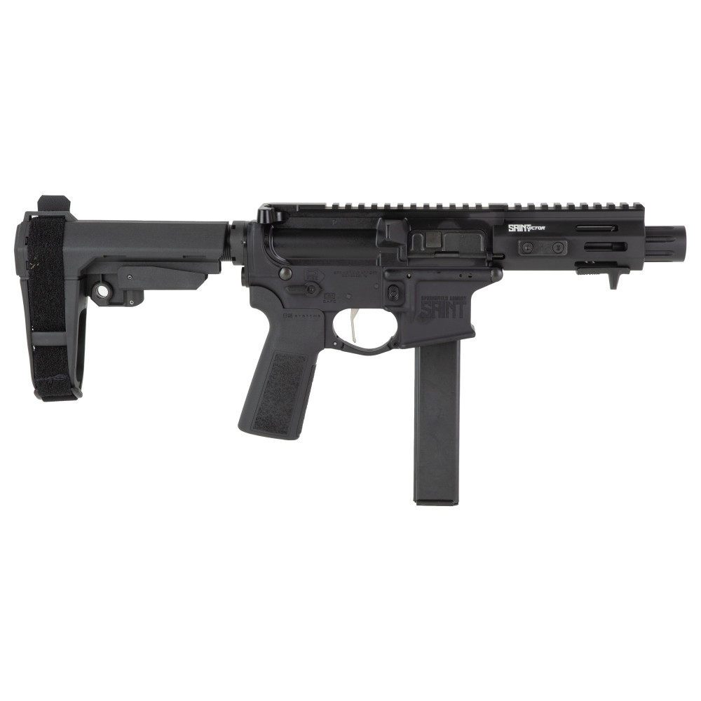 Springfield Saint VICTOR, Semi-automatic, AR Pistol, 9MM, 5.5" Threaded Barrel, Anodized Finish, Black, B5 Systems Type 23 Grip, SBA3 Pistol Brace, 32 Rounds, 1 Magazine STV95509B