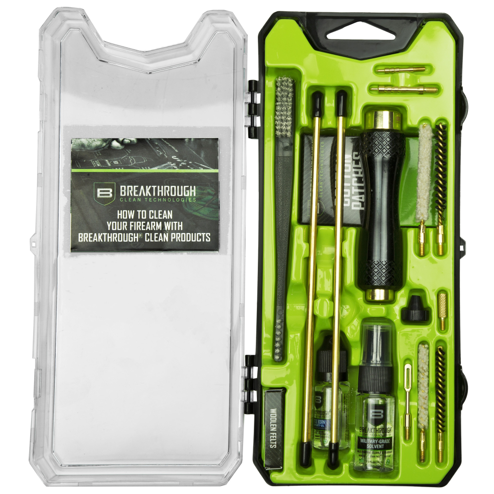 Breakthrough Clean Technologies Vision Series, Cleaning Kit, For .17/.22 Caliber Airguns, Includes Cleaning Rod Sections, Hard Bristle Nylon Brushes, Jags, Patch Holders, Cotton Patches, Durable Aluminum Handle And Mini Bottles of Breakthrough Military-Grade Solvent And Battle Born High-Purity Oil BT-CCC-AG