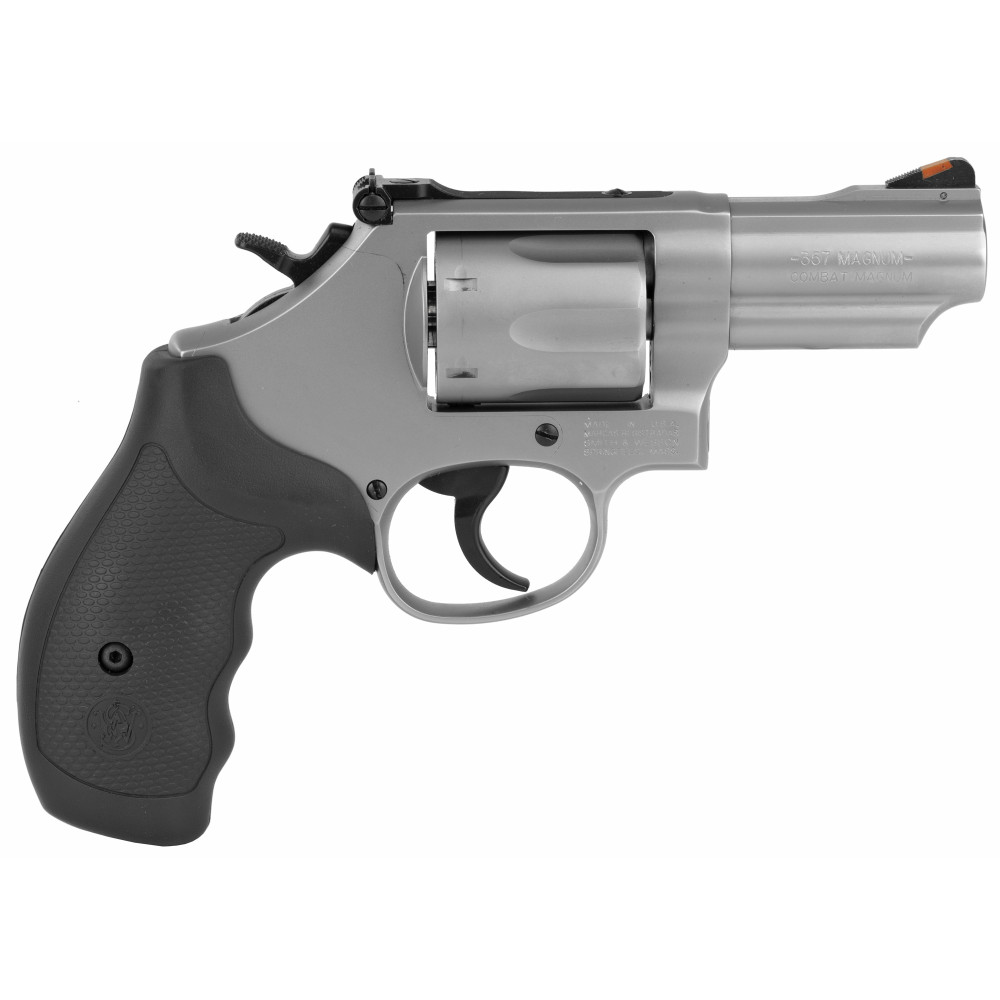 Smith & Wesson Model 66, Combat Magnum, Double Action/Single Action, Metal Frame Revolver, K-Frame, 357 Magnum, 2.75" Barrel, Stainless Steel, Rubber Grip, Red Ramp Front and Adjustable Black Blade Rear Sight, 6 Rounds 10061