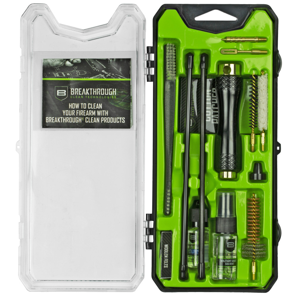 Breakthrough Clean Technologies Vision Series, Cleaning Kit, For AR10, Includes Cleaning Rod Sections, Hard Bristle Nylon Brushes, Jags, Patch Holders, Cotton Patches, Durable Aluminum Handle And Mini Bottles of Breakthrough Military-Grade Solvent And Battle Born High-Purity Oil BT-CCC-AR10