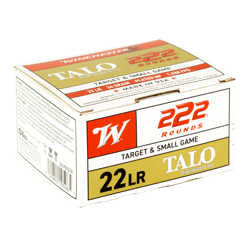Winchester Ammunition Rimfire, 22 LR, 36 Grain, Plated Hollow Point, 222 Per Box 22LR222TA