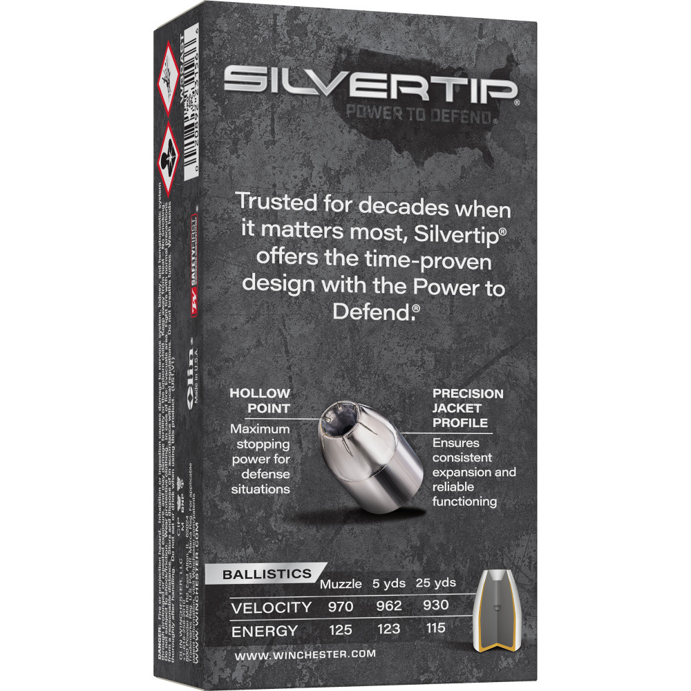 Winchester Ammunition Silvertip, 32 Auto, 60 Grain, Jacketed Hollow Point, 50 Round Box W32AST