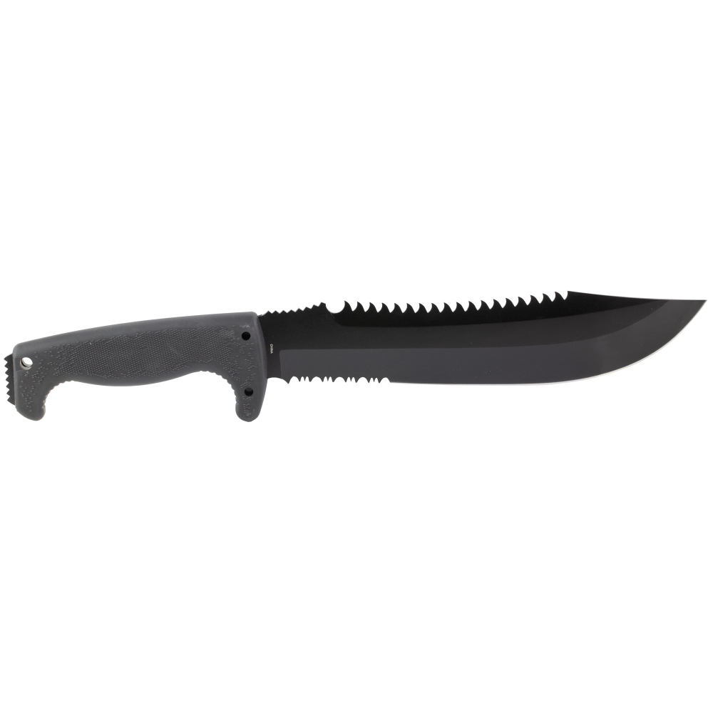 For the primitive in all of us. When the only thing that separates you from them is your equipment, it better be good. Using SOG's Hardcased black coating, the Jungle Primitive is durable and comfortable with a molded Kraton handle that features Digi-Grip, a way to guarantee gripping power where you need it. One can instantly turn the Primitive into a small machete, limb saw, or hammer. Includes a Nylon sheath with utility pouch. Don't be caught alone!