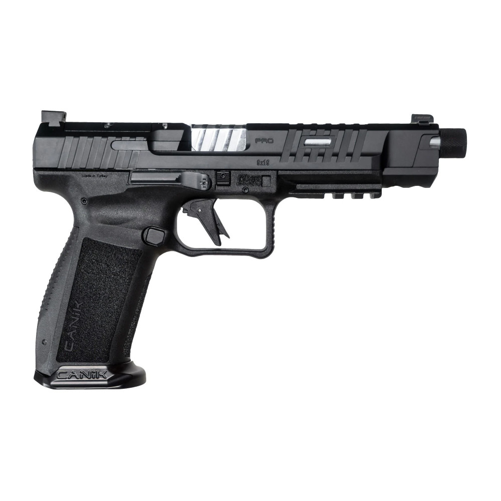 CANIK METE SFX Pro, Striker Fired, Semi-automatic, Polymer Frame Pistol, Full Size, 9MM, 5.74" Threaded Barrel, 1/2X28 Thread Pitch, Matte Finish, Black, Tritium Front Sight with Black Rear, Flared Magwell, Optic Ready, Aluminum Trigger, 2 Magazines, (1)-20 Round and (1)-18 Round HG7068-N