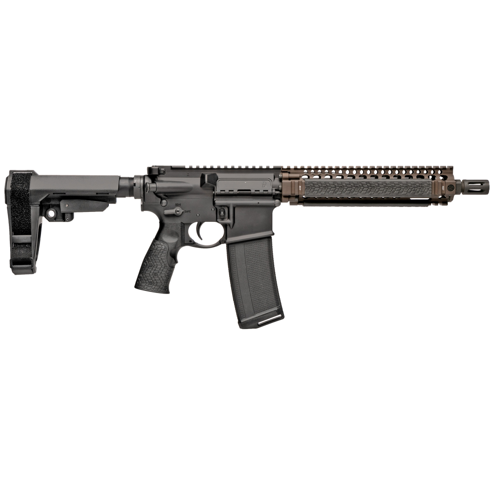 Daniel Defense MK18, Semi-automatic, AR Pistol, 556NATO, 10.3" Cold Hammer Forged Barrel, FDE Anodized Finish, Daniel Defense Pistol Grip, SBA3 Pistol Stabilizing Brace, Ambidextrous Safety, RIS II Handguard, Grip-N-Rip Charging Handle, Daniel Defense Rail Panels, 1 Magazine, 32 Rounds 02-088-06030