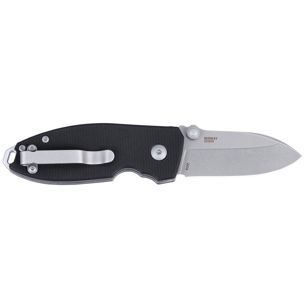 Columbia River Knife & Tool Squid Button Lock, Folding Knife, 2.27" Drop Point Blade, D2 Blade Steel, 5.7" Overall Length, Stone Wash Finish, Silver, Black G10 Handle, Button Lock 2474