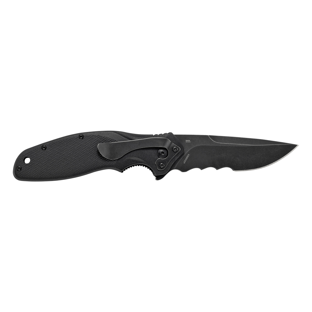 Columbia River Knife & Tool Shenanigan w/ Veff Serrations, 3.35\" Drop Point Blade, Stonewashed Finish, 1.4116 Stainless Steel, Assisted, IKBS, Black Glass-Reinforced Nylon Handle, Black Blade K800KKP