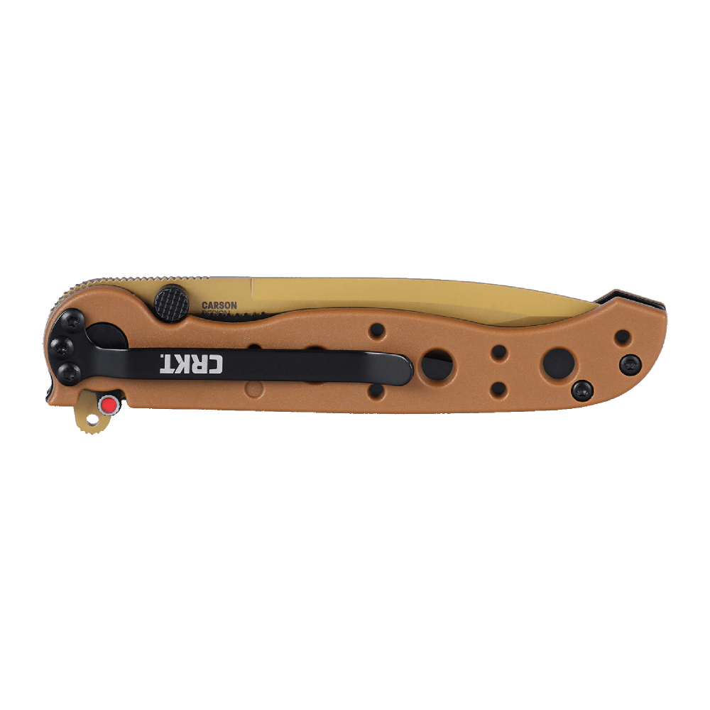 Columbia River Knife & Tool M16, Folding Knife, EDP Finish, Dessert Tan, Glass-Reinforced Nylon Handle, 3.13\" Blade Length, D2 Steel, Plain Edge, Liner Lock M16-01DZ