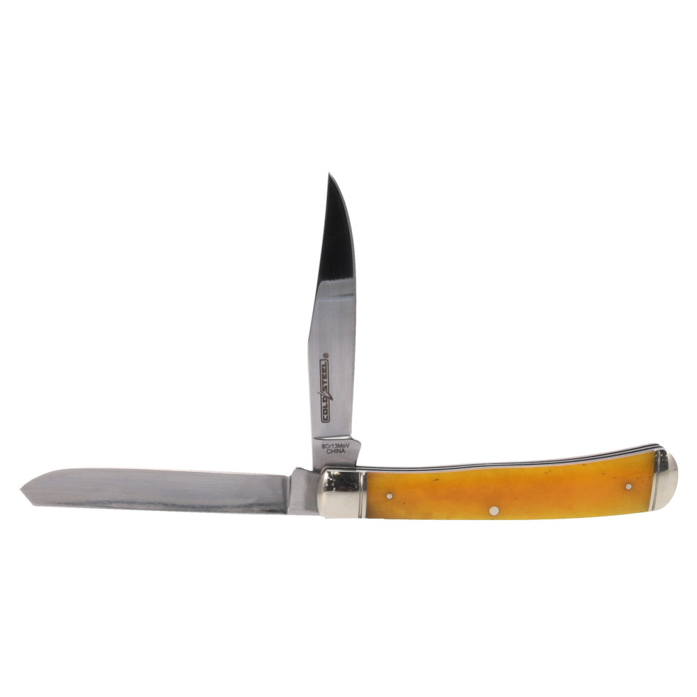 Cold Steel Trapper, Folding Knife, 2 Blade, 3.3" Clip Point Blade, 3.3" Spey Blade, 7.425" Overall Length, 8Cr13MoV Blade Steel, Plain Edge, Satin Finish, Silver, Yellow Bone, Slip Joint CS-FL-TRPR-Y