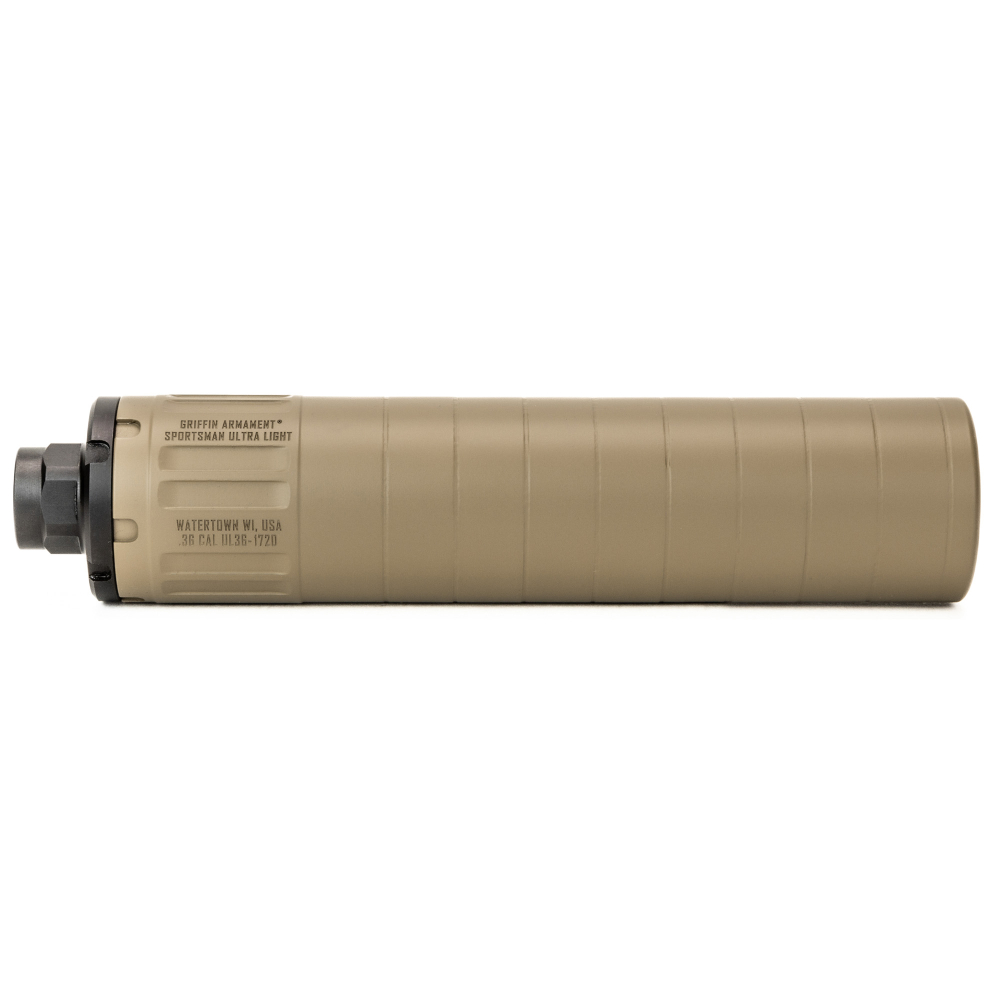 Griffin Armament Sportsman Ultra Light 36HD, Suppressor, 6.09" Long, 36 Caliber, 17-4 Stainless Steel, Cerakote Finish, Flat Dark Earth, HUB Compatible GASUL36HDFDE-W