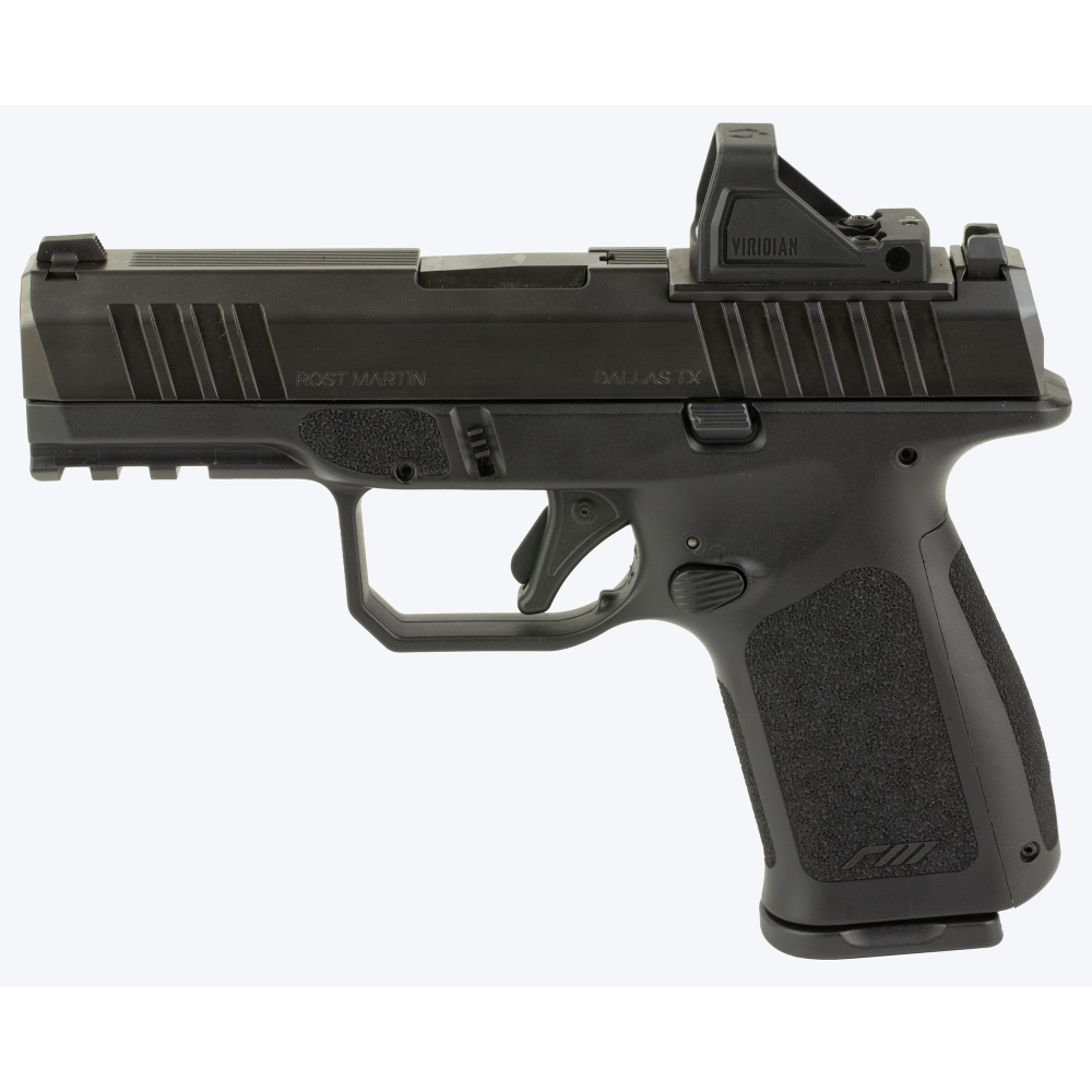 Rost Martin RM1C Range Ready Package, Striker Fired, Semi-automatic, Polymer Frame Pistol, Compact, 9MM, 4" Barrel, Nitrocarburized Finish, Black, White Front Dot, Black Serrated Rear, Viridian RFX11 Red Dot, 10 Rounds, 4 Magazines, Includes Savior Specialist Pistol Bag, (1) Set Caldwell Eye Protection and (1) Set Ear Foamies RM1CBLKOSP10RR