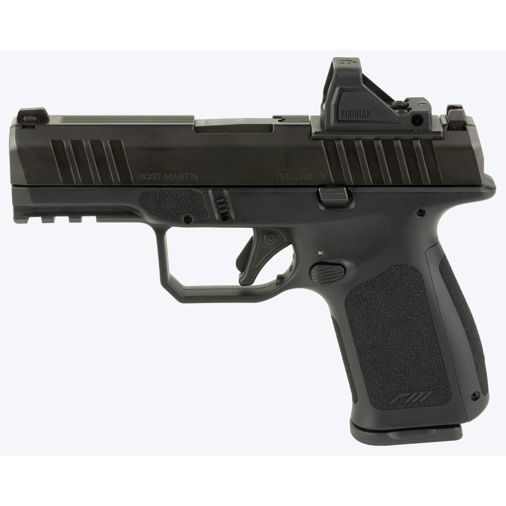 The Rost Martin RM1C Optic Ready conceal carry pistol with Range Ready Package is a premier 9mm compact handgun designed for serious shooters, featuring a sleek black finish and a robust nitrocarburized steel optic-ready slide. With a 4 hammer-forged barrel and a 7.1 overall length, this pistol delivers exceptional accuracy and concealability. Equipped with a white dot front sight, black serrated rear sight, and a pre-installed Viridian RFX11 red dot optic, the RM1C ensures rapid target acquisition in any lighting condition. The textured polymer grip with aggressive stippling and fully ambidextrous controls, including a flat-face trigger, provides superior handling and control for both right- and left-handed shooters.