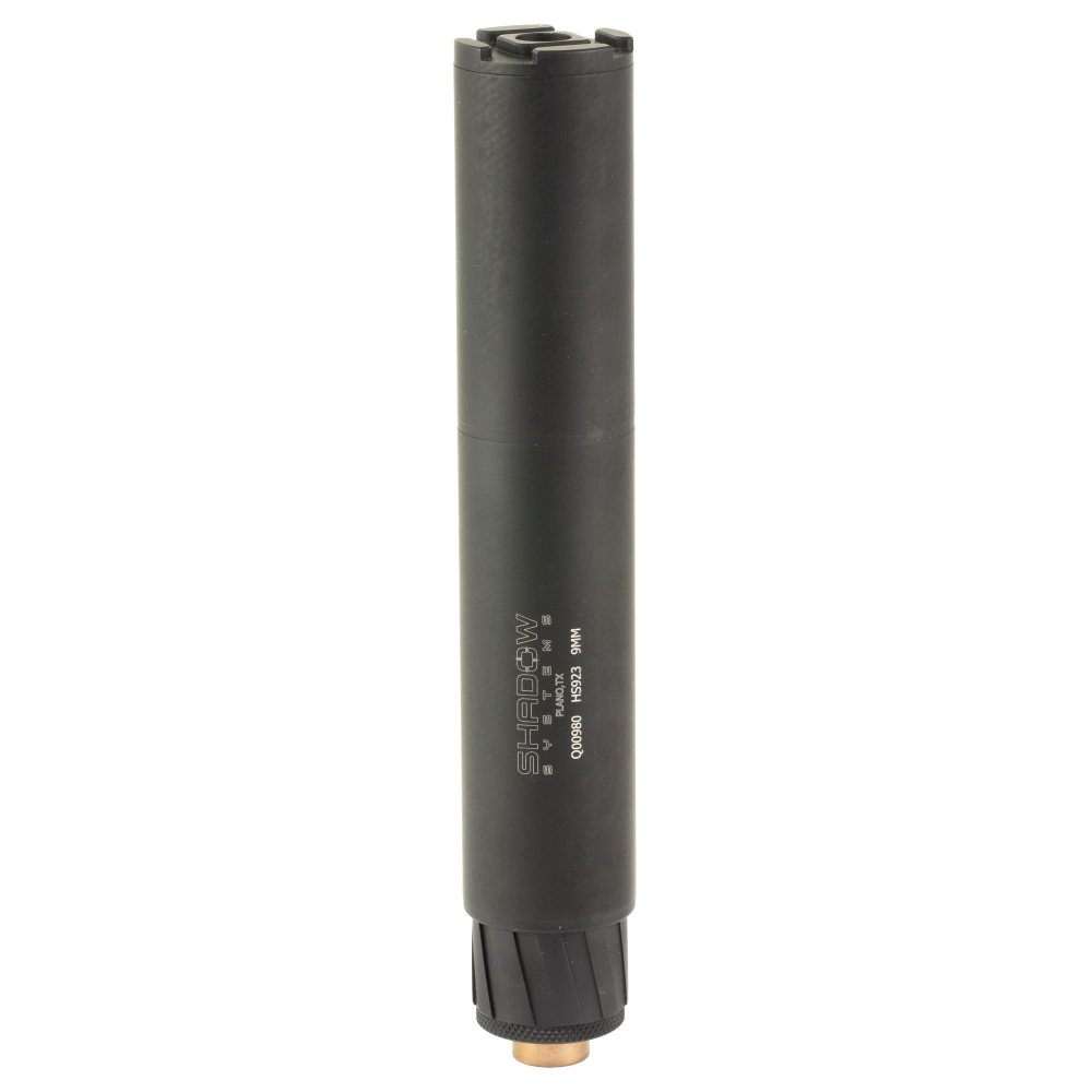Shadow Systems HS923, Modular Handgun Suppressor, 9MM, 7075 Aluminum Construction with Titanium Blast Baffle, Anodized/Cerakote Finish, Black, 1.37" Diameter, 8.18" Long Configuration, 5.33" Short Configuration, 1/2X28 Bronze PVD Piston Included SS-9000