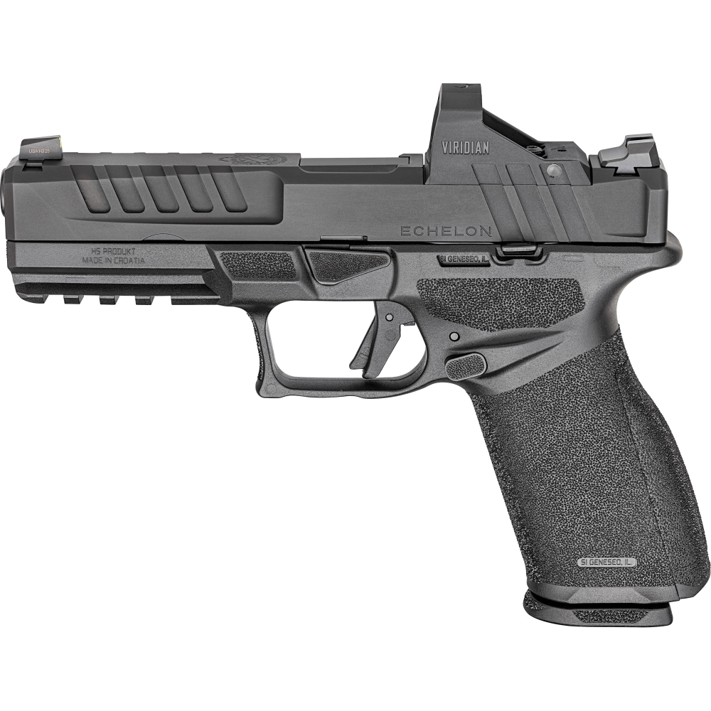 Springfield Echelon, Semi-automatic, Striker Fired, Polymer Framed Pistol, Full Size, 9MM, 4.5" Barrel, Melonite Finish, Black, Optics Ready Slide, Front White Dot Sight, Tactical Rack U-Dot Rear, Viridian Green Dot, 10 Rounds, 4 Magazines, Includes Range Bag EC9459BLC-PAC