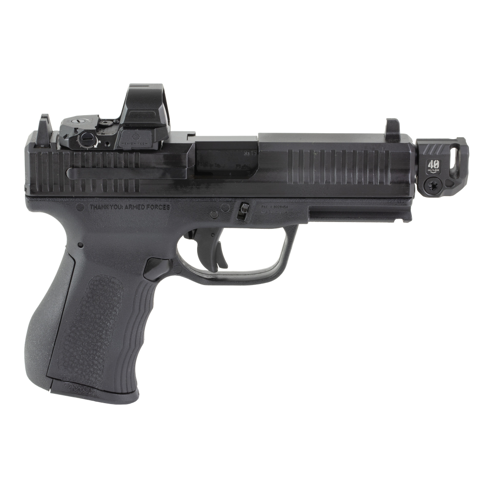 FMK Firearms Gen 3, Striker Fired, Semi-automatic, Polymer Frame Pistol, Compact, 9mm, 4.5" Threaded Barrel, Strike Industries Compensator, Textured Finish, Black, Suppressor Sights, 2 Magazines, (1)-17 Round, (1)-14 Round, Includes Strike Industries Red Dot G39BSTR