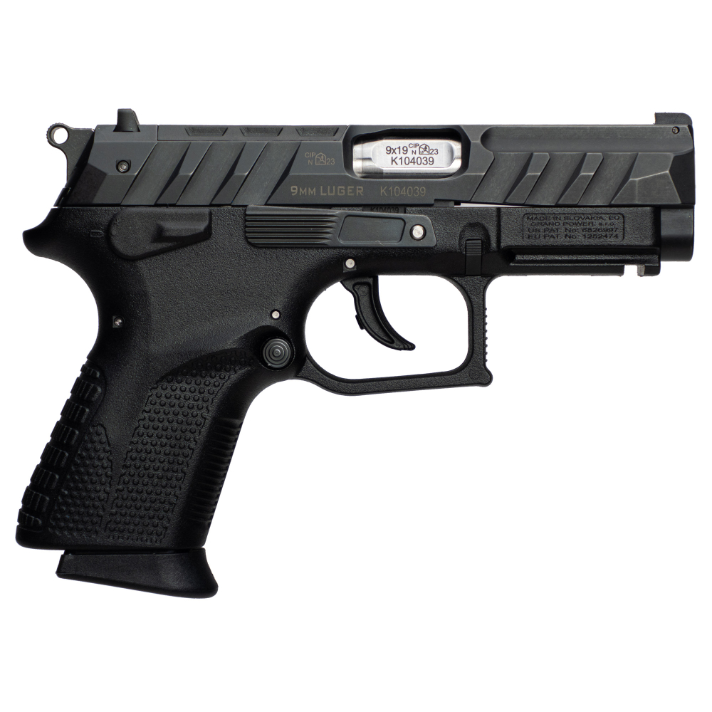 Grand Power P1S, Semi-automatic, Double Action/Single Action, Compact, Polymer Frame Pistol, 3.66" Barrel, Manual Thumb Safety, Matte Finish, Black, 3-Dot Sights, (4)-Optic Adapter Plates, 12 Rounds, 3 Magazines 8588005944663
