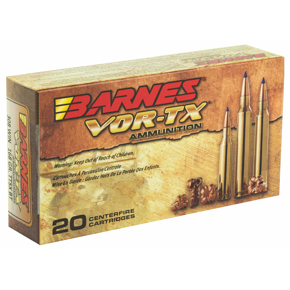 Barnes VOR-TX, 308 Winchester, 168 Grain, Tipped Triple Shock X, Boat Tail, Lead Free, 20 Round Box, California Certified Nonlead Ammunition 21541
